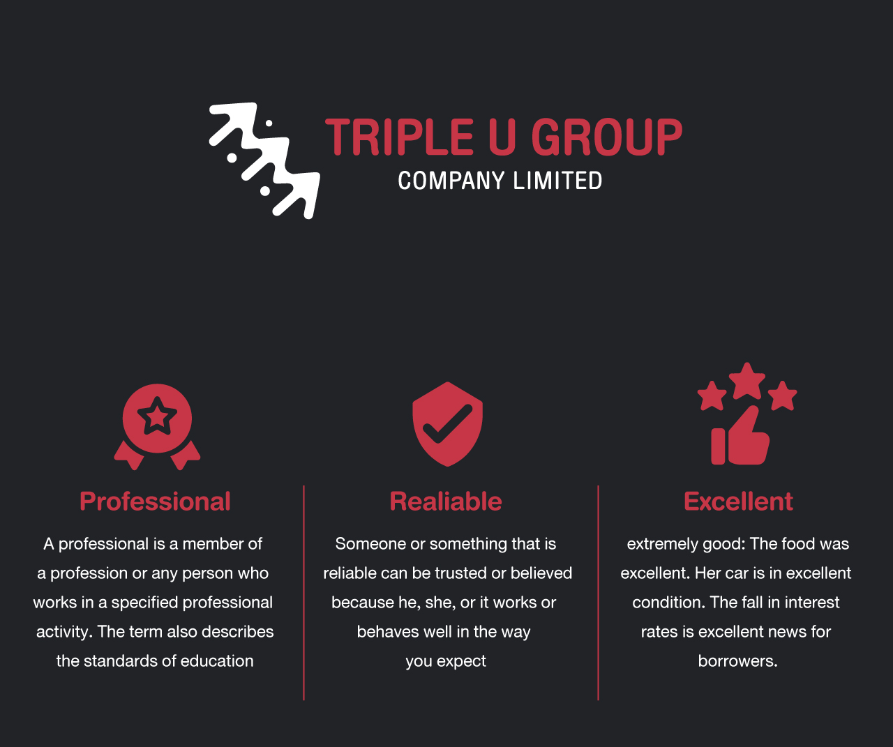 Triple U Group ดำเนินธุรกิจให้บริการจัดหา-นำเข้าอะไหล่และวัสดุสิ้นเปลืองสำหรับโรงงานอุตสาหกรรม รวมถึงบริการจัดซื้อเครื่องมือ, เครื่องจักร